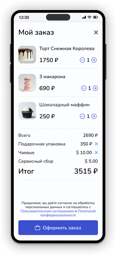 Добавьте к вашему меню возможность приёма заказов и управляйте ими прямо из личного кабинета.